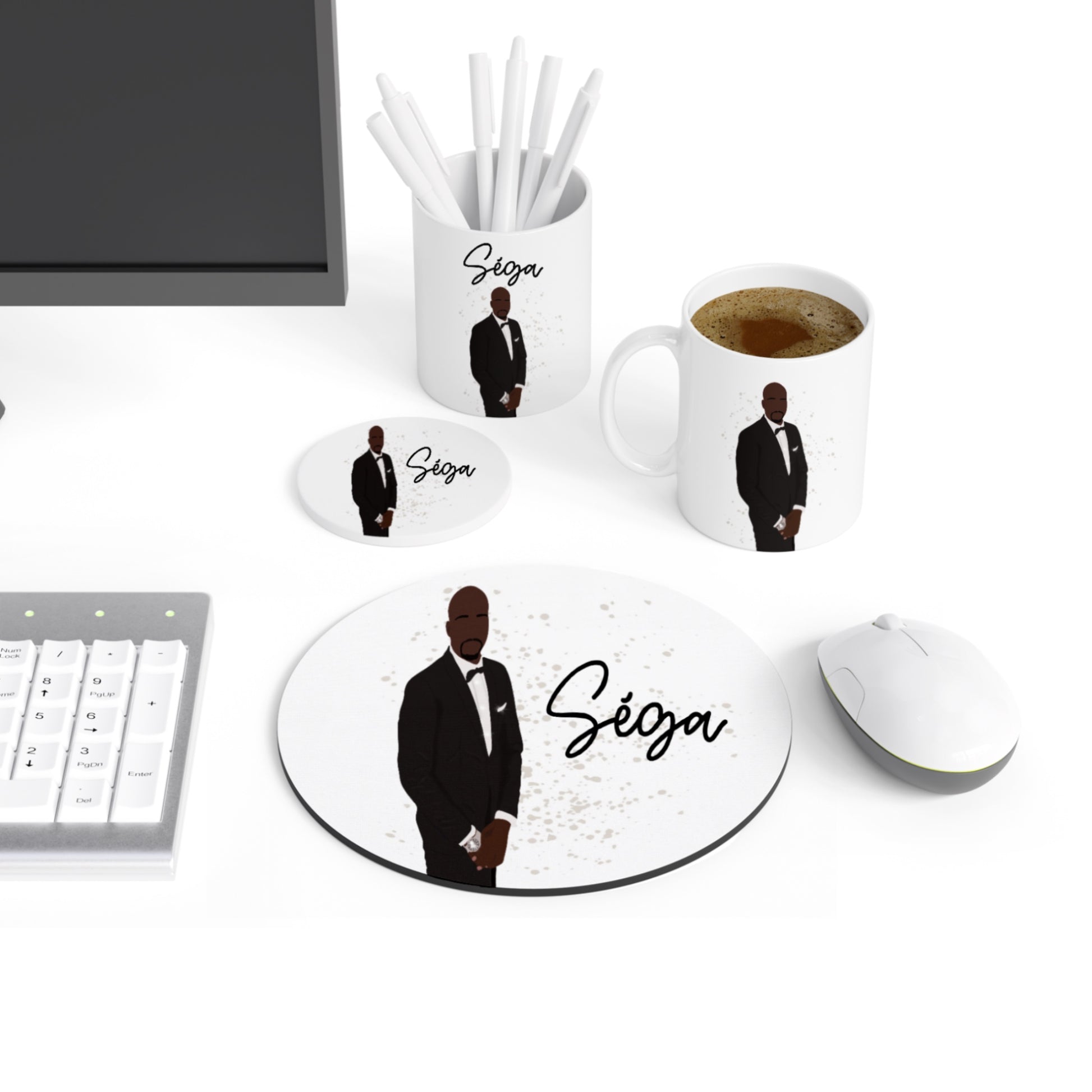 Une box bureautique personnalisable contenant : Un mug, Un pot à stylos, Un dessous de verre et Un tapis de souris une idée parfaite pour un cadeau professionnel ou personnel. (Le prénom pour le mug se trouvera a l'arrière)