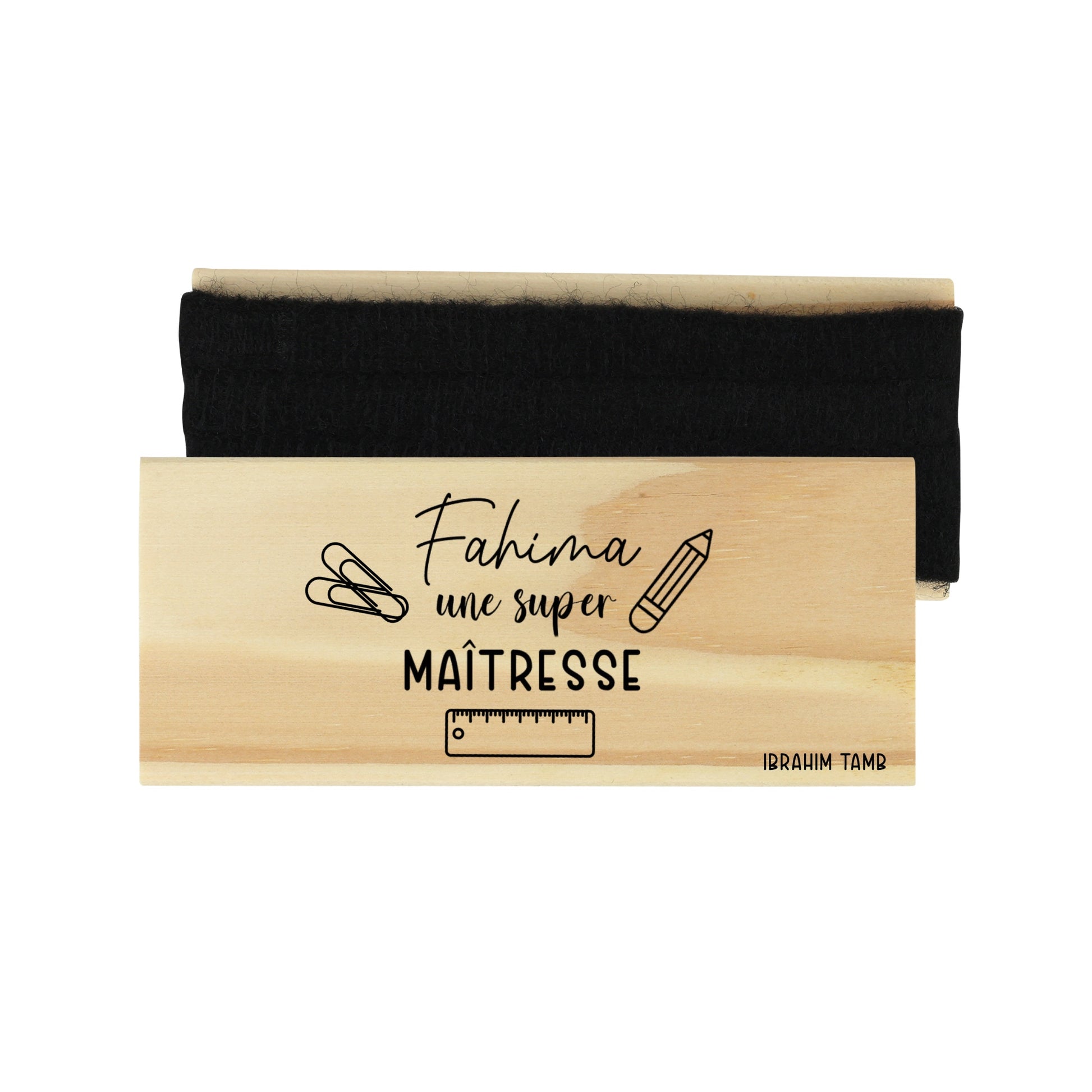 Effaceur de tableau en bois "Gravure" est l'outil parfait pour les enseignants à la fin de l'année scolaire. Personnalisez-le avec leur nom et il deviendra un souvenir unique et pratique. Les maîtres et maîtresses apprécieront cet accessoire personnalisé à 100% pour leur salle de classe.Ce Cahier en bois "Gravure" est personnalisable avec une gravure unique. Fabriqué en bois de qualité, il offre une alternative durable et élégante aux cahiers en papier classiques. Ajoutez une touche personnelle à vos notes et écrits grâce à cette option de personnalisation.