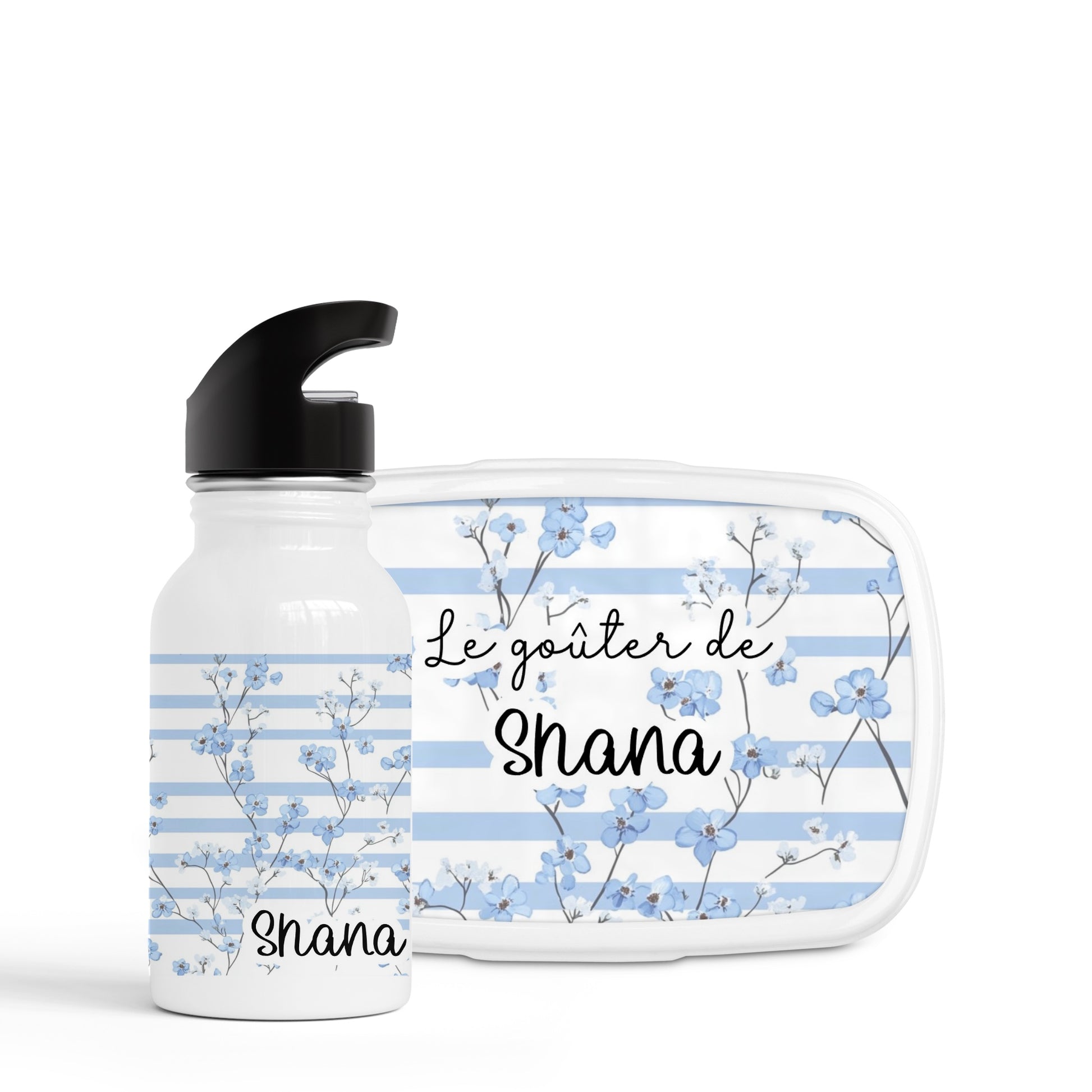 Ensemble gourde + boîte à goûter "Fleur bleu"