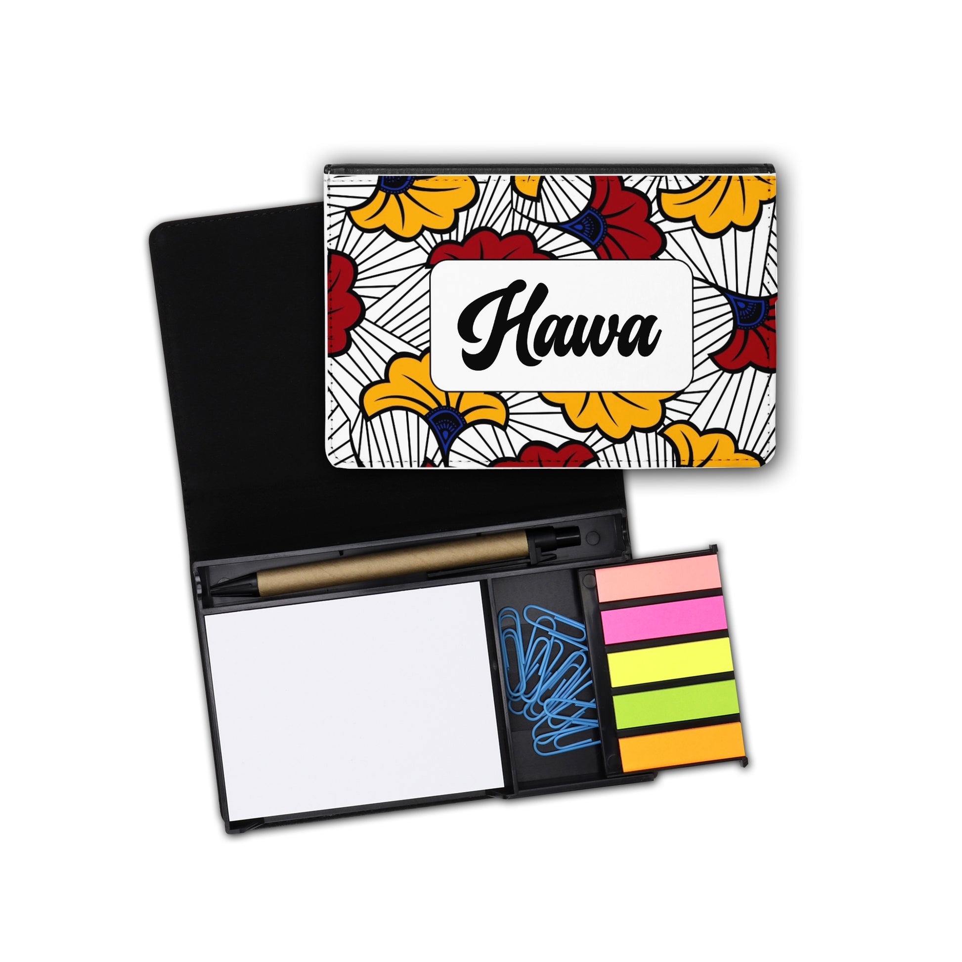 L'étui bloc-notes personnalisable, comprenant un stylo, des post-it de couleurs et un bloc-notes, est un accessoire très pratique pour prendre des notes et organiser vos idées. Vous pourrez facilement l'emporter avec vous au travail, à l'école, lors de vos déplacements ou pour un usage quotidien à la maison.