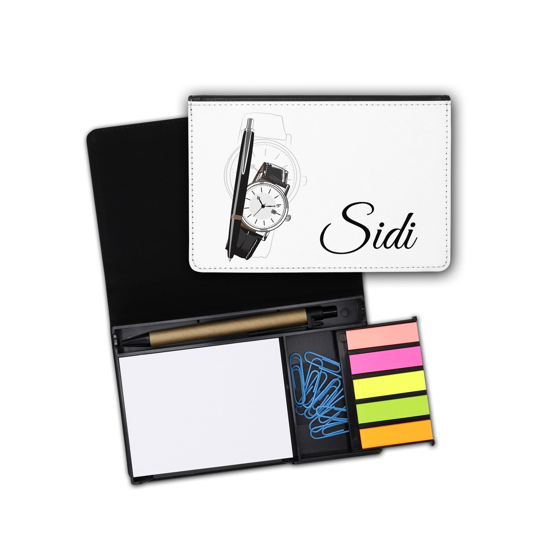 L'étui bloc-notes personnalisable, comprenant un stylo, des post-it de couleurs et un bloc-notes, est un accessoire très pratique pour prendre des notes et organiser vos idées. Vous pourrez facilement l'emporter avec vous au travail, à l'école, lors de vos déplacements ou pour un usage quotidien à la maison.