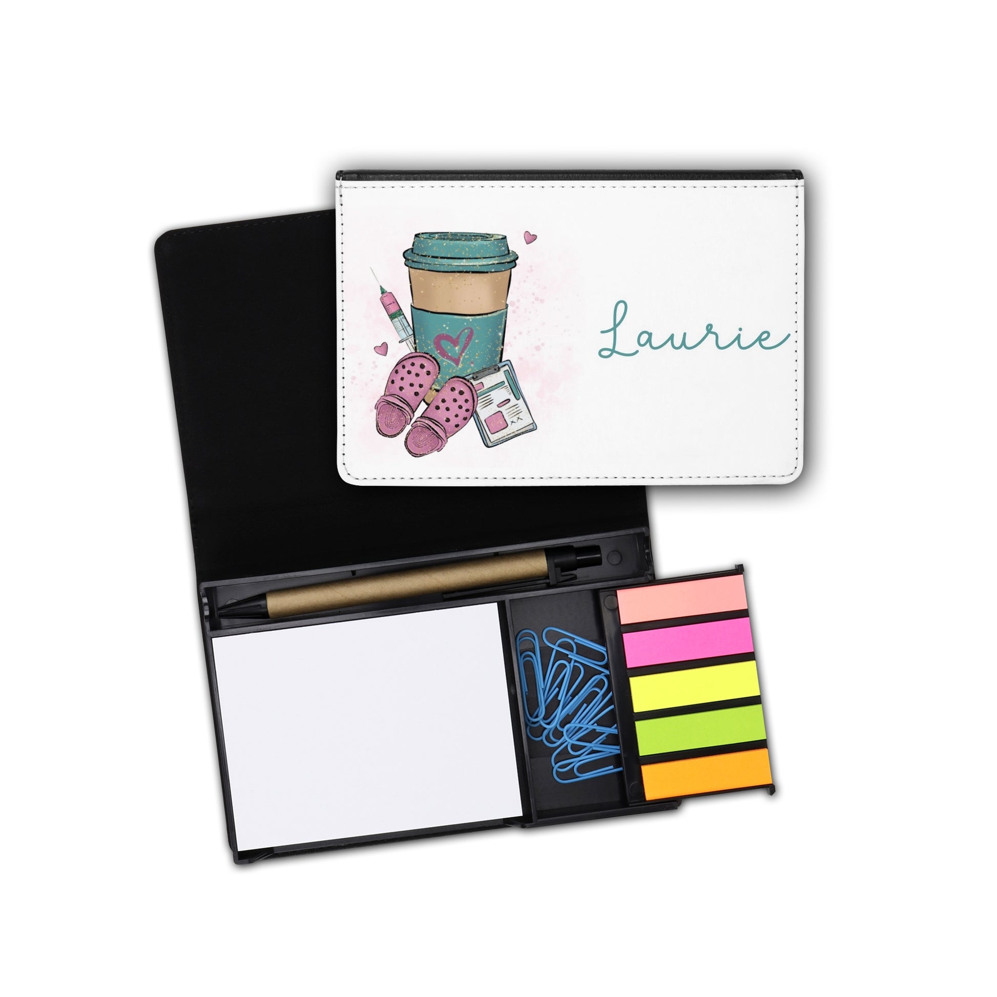L'étui bloc-notes personnalisable, comprenant un stylo, des post-it de couleurs et un bloc-notes, est un accessoire très pratique pour prendre des notes et organiser vos idées. Vous pourrez facilement l'emporter avec vous au travail, à l'école, lors de vos déplacements ou pour un usage quotidien à la maison.