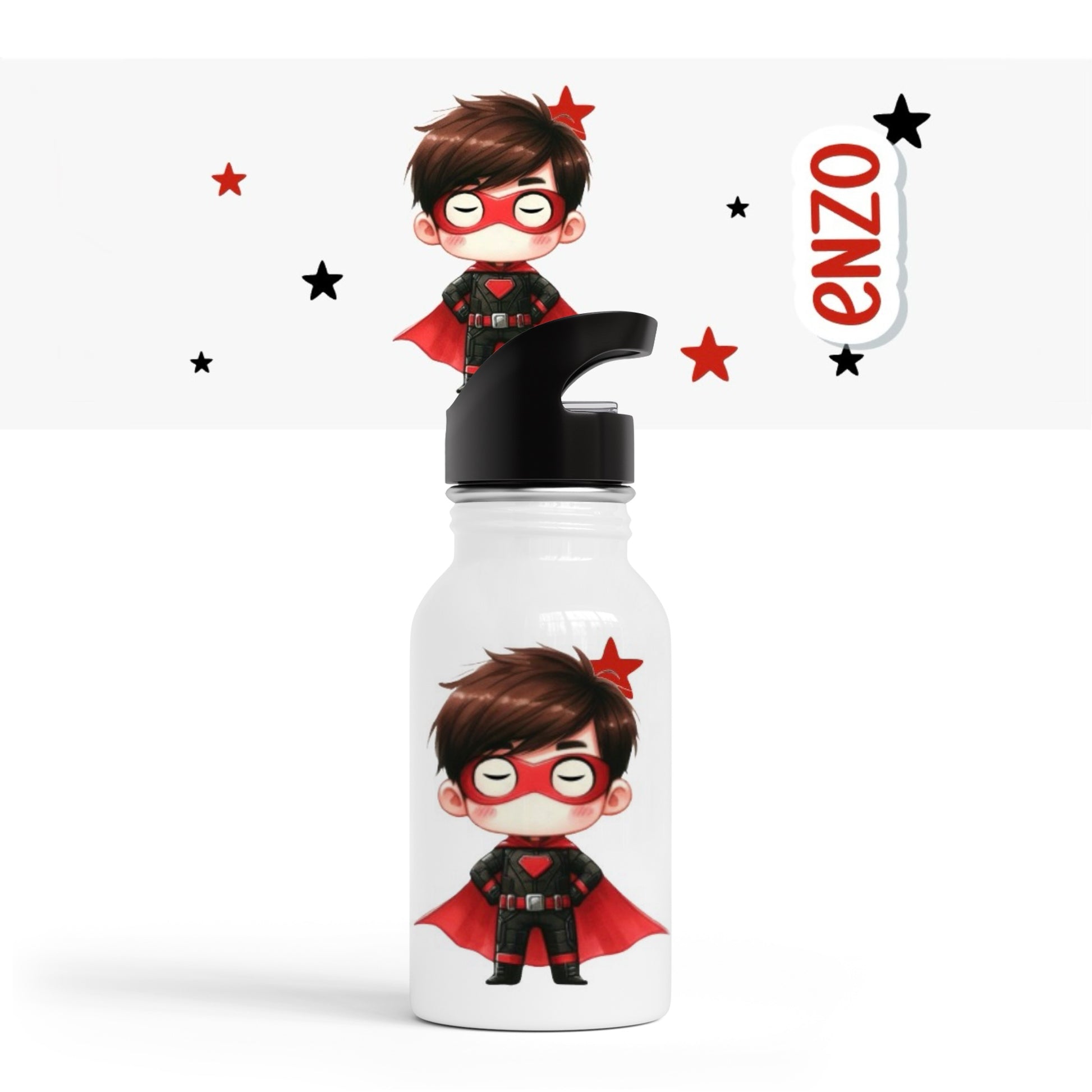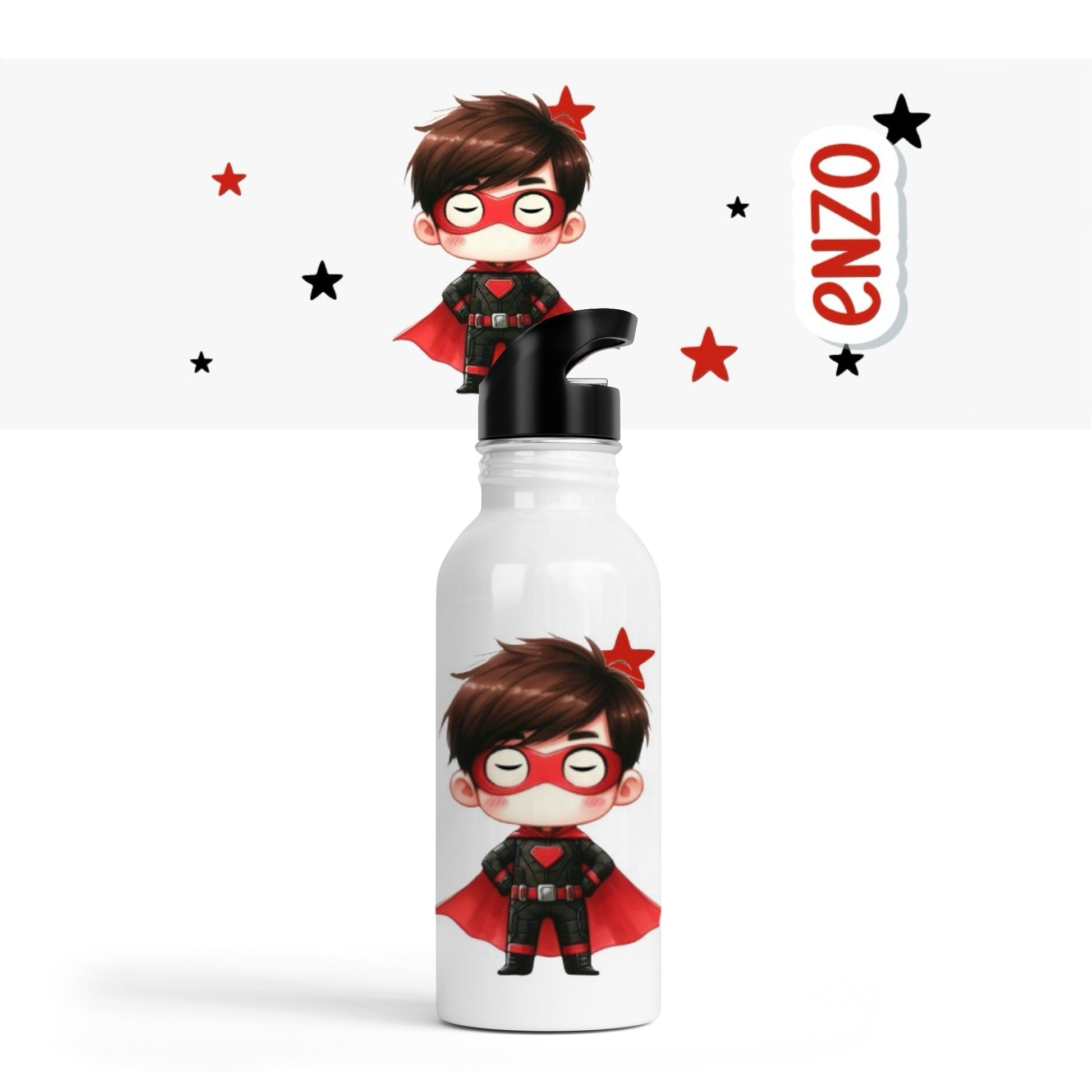 Gourde avec paille "Super héros"
