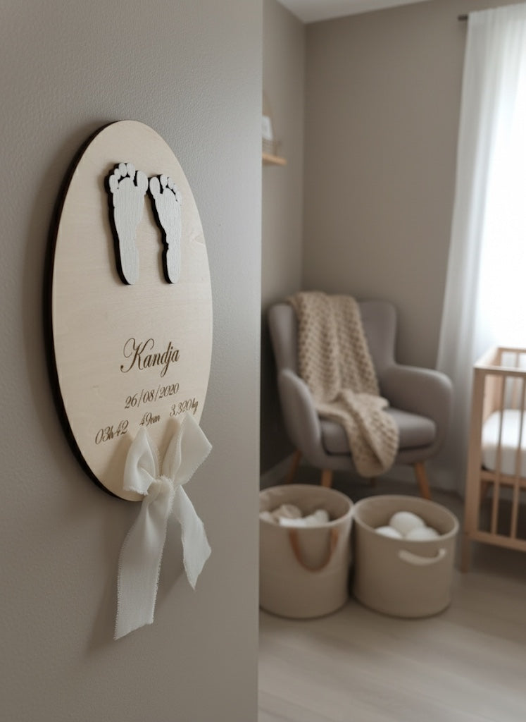 Plaque Naissance Personnalisée Empreintes en Bois "Gravure"